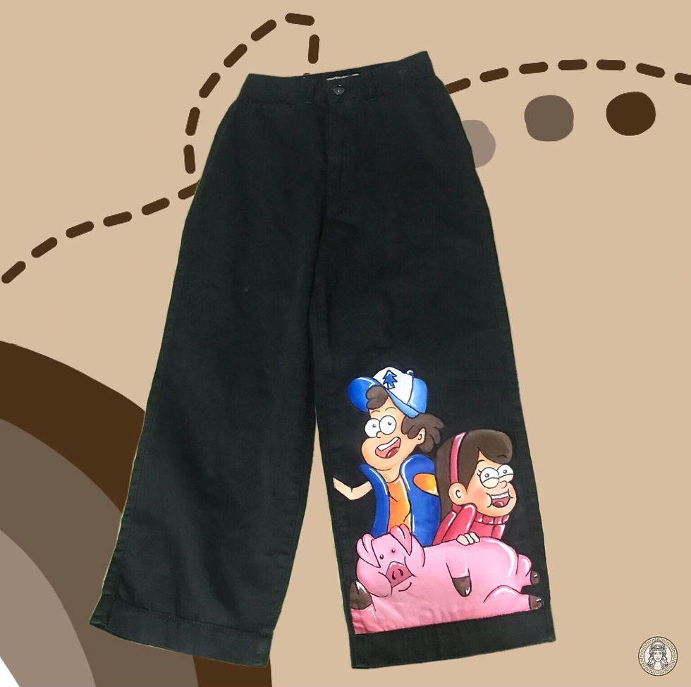 were hand painted jeans and denim. in tyche we use acrylic paint and it will be water proof and water resistant once dried.